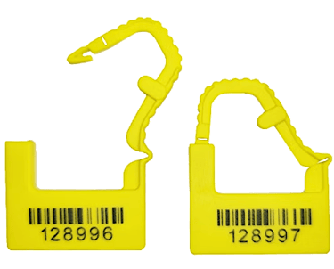 Premium plastic indicative padlock seal with barcode designed for easy application & removal.
