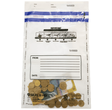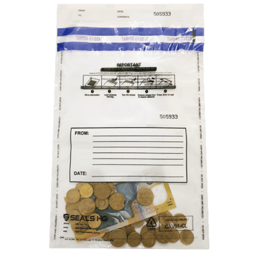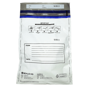 Seals HQ Tamper Evident Bags are designed with numerous security features to provide top security. All our tamper evident bags are categorized Level 4 which detects Heat, Freon and Water attacks. Our bags are made with LDPE material, allowing the bags to be 100% recyclable. Our single use tamper evident bags can be customized to any size requirement and artwork to include corporate logos, writing panels, customized text and alphanumeric serial numbers and barcodes.